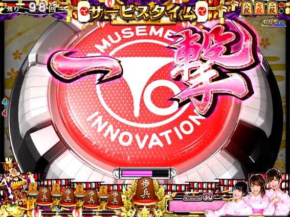 全大当りが確変だが、初当りが16R以外だと終了後にST「コマコマチャンス」へ突入。10回転以内に当たればサービスタイム突入濃厚だ。なお、本機のSTは14回転のため、残りの4回転は通常背景となる。コマコマチャンス終了後は即ヤメしないようにしたい。サービスタイムは電サポ100回転の右打ち連チャンモードとなっている。