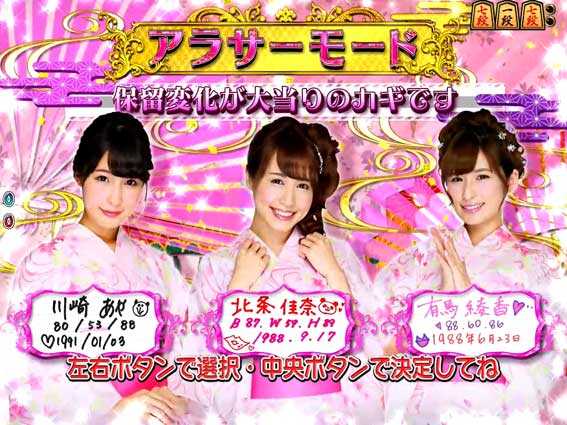 新たに搭載された「エイジセレクトシステム」は年代ごとに特徴の異なる3つの選べるモードを搭載したもの。「アラトゥエモード」は多彩な演出、「アラサーモード」は保留変化特化、「アラフォーモード」は予告が出ればチャンスとなるシンプルモードとなっている。