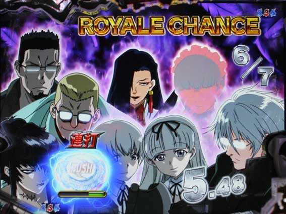 通常時のロワイヤルチャンス成功で発生する6R確変大当り。終了後はバウンティロワイヤルに突入する。