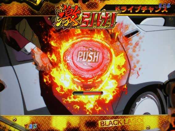ブチギレ演出などから発展する灼熱演出。最終的にドライブギアを引いてドクロギミックを出現させれば大当り濃厚!