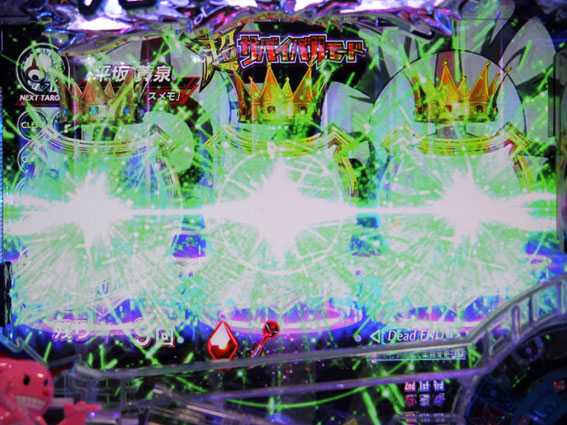 時短終了後は残保留を消化できる、いわゆる「泣きの4回転」とも言える虚空の世界に突入。電チュー保留を消化できるため、ココで当たれば15R&Challenge Rushモード突入となる。