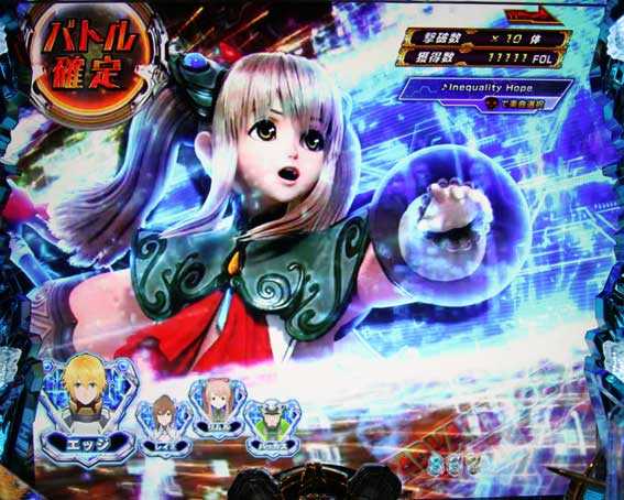 本機はスクウェア・エニックスから発売された人気RPGとのタイアップ機。スペックは大当り確率1/229.1、確変突入率80%・50回転+αまで継続、転落確率1/234.0の転落抽選タイプ。初当り後は主に電サポ50回転の「ディサイシブバトル」に突入し、50回転目の演出に成功すればバトル終了まで確変&電サポが継続する「アドバンテージバトル」に突入する仕組みだ。