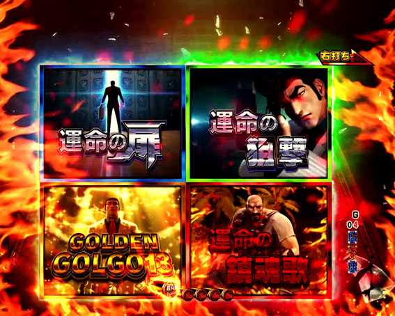 超A級RUSHは時短が99回転&残保留4個のため、実質次回大当り当選が濃厚。RUSH継続率は約59%で、継続失敗時は大当り後に運命チャンスへ突入する。運命チャンスは運命チャレンジとほぼ同じゲーム性&演出が展開。時短1回転+残保留4個内での大当りを目指すことになる。