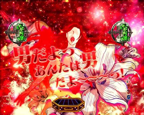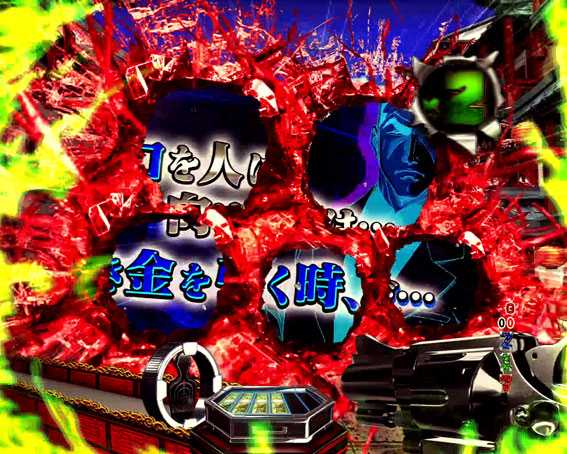 通常時は、図柄揃い直後に再抽選演出が発生。ビルから飛び降りたゴルゴ13が3or7図柄揃いを撃ち抜けば超A級RUSH直撃大当りとなる。「月が虹色」「デカボタン」「『ギルティー』のボイス」などが発生すれば昇格濃厚だ。
