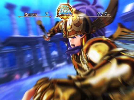 | 特徴 | 聖闘士RUSH直撃抽選を1/409で行う。 ゲーム数天井も浅いゲーム数が選択されやすく、 GBレベルは必ず2以上が選択される。 |