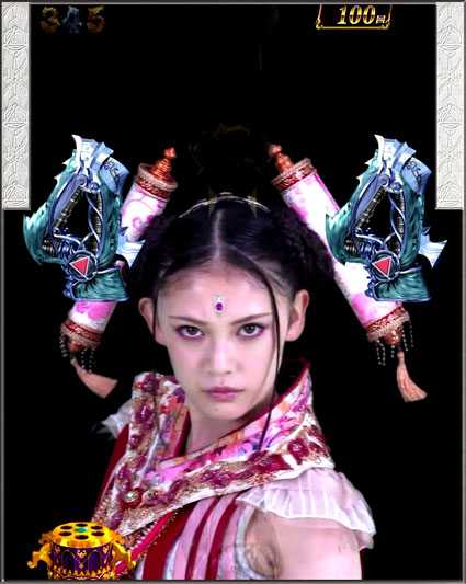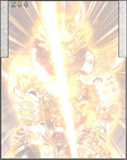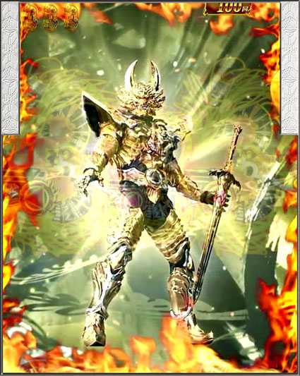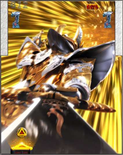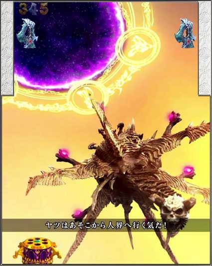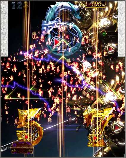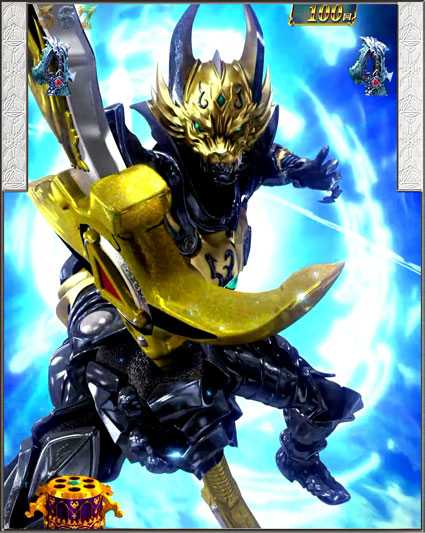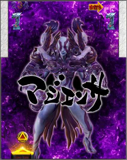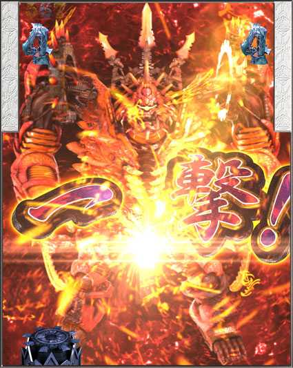 リーチ後の鎧召還演出で3D魔天使群が出現すると、筐体上部からP.F.O.G.翔が出現して信頼度大幅アップ!