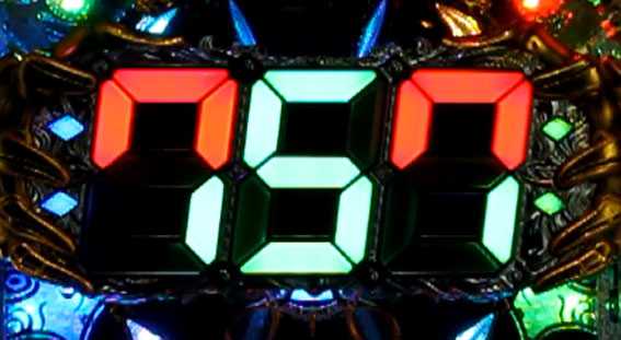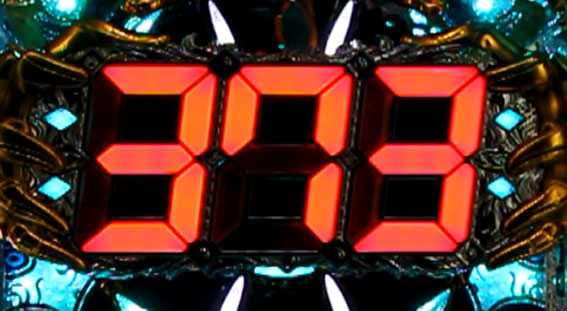 アビスシャッターが開いて数字が表示される。数字はチャンス目の残り停止回数を示唆しているため、大きな数字ほどチャンスだ。また、数字が0になる前にリーチがかかると、残りの数と同じ分だけ、羅神盤リーチ中に赤7マスがプラスされる。
