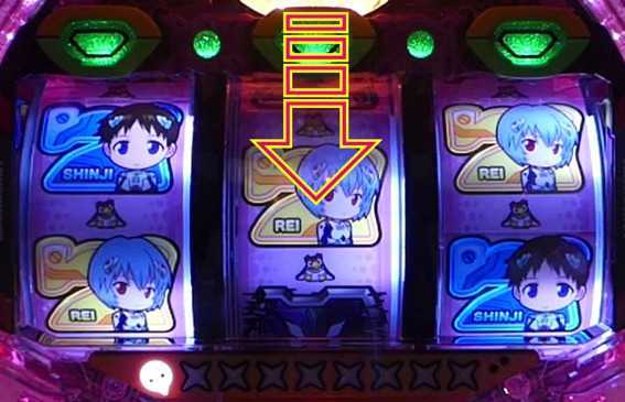 中リールが逆回転し、シンジの呻き声と共に大当り付近でスロー進行。最後は中リールが高速変動し、ゲンドウの「押せ!」ボイスが発生。