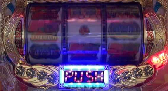 メダル図柄(ブランク図柄)が揃うと発生。左右リールで図柄がテンパイした後、ボタンPUSHで中リールに大当り図柄を狙うリーチだ。