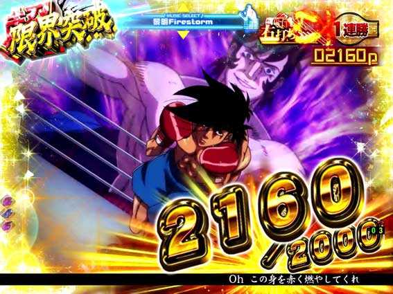 | 出現キャラ | 丹下段平 | 3%未満 | 当たれば 16R濃厚 |
