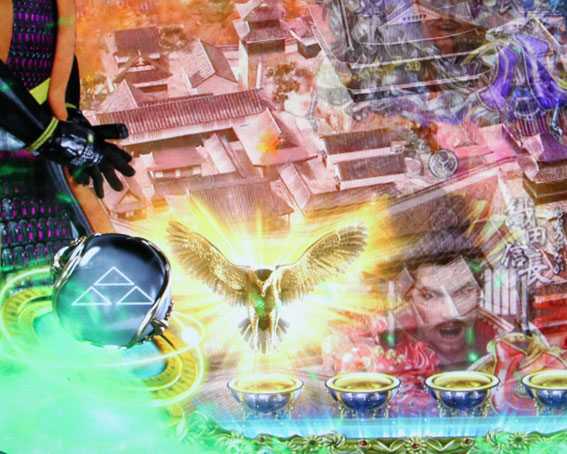 演出面では、大砲役モノが進化した「極大砲可動体」と、液晶全体を覆い尽くす巨大ギミック「極家紋可動体」が迫力満点。その他では「覇王進撃ゾーン」「大廻天連続演出」「剣舞演出」「決戦系リーチ[大砲]」「極熱カットイン演出」「ストーリーリーチ 桶狭間の戦い」の六大極演出が注目だ。