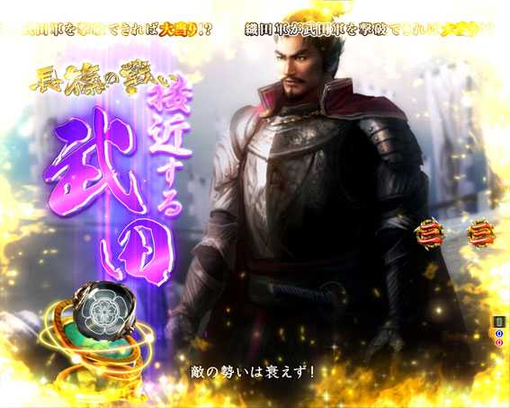 最も信頼度が高い本機最強リーチ。本陣へ乗り込んだ織田信長が今川義元を討ち取れば大当り!?