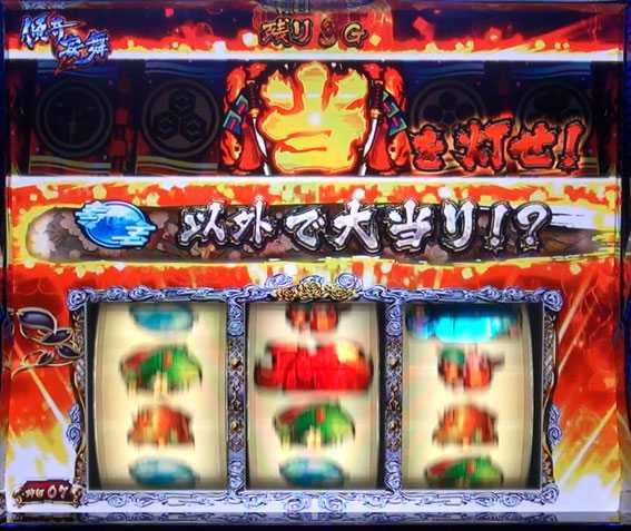 兼続JAC中は、予告音発生時に左リールにチェリーを狙って中段に止まると、カットインが発生する可能性がある。カットインパターンは複数あり、それぞれ出現率に設定差が存在するようだ。上記画像の兼続&慶次パターンなら設定6の可能性アップ!?
