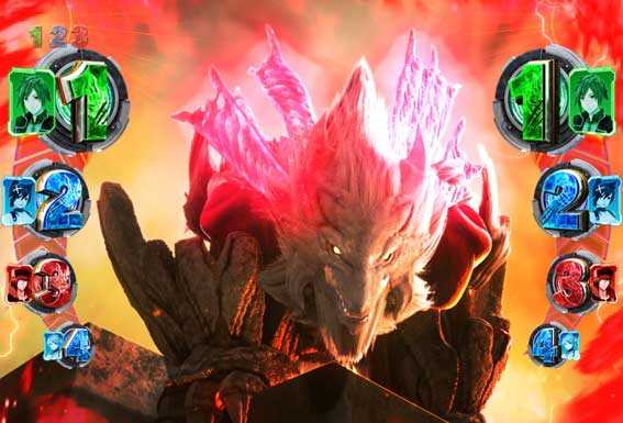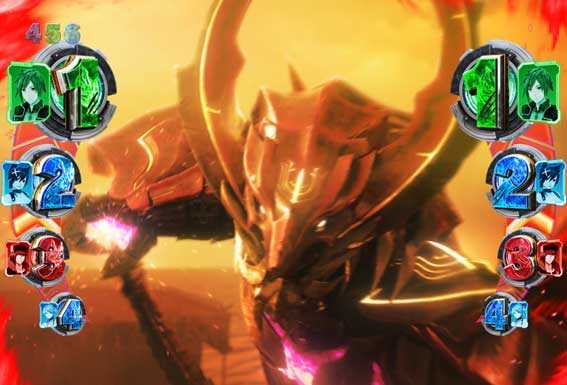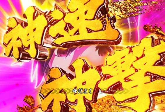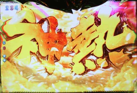 初回大当りラウンド消化後にバトルが発生し、勝利すれば神バトルRUSH突入となる。バトル中にボタンを連打するとエフェクトの色が変化して勝利期待度を示唆。青のまま変化しなかったり、虹に変化すれば勝利濃厚だ。