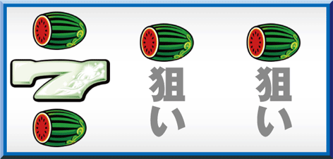中リールはピンク7をアバウトに、右リールはいずれかの7をかなり早めに狙ってスイカをフォロー!