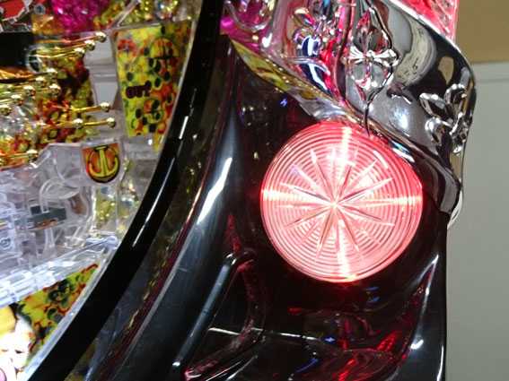 マシンガンの効果音とともに筐体右のランプが光る予告。色は緑<赤<金<虹の順にアツい!