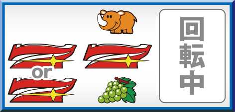 中段に7図柄停止時もブドウ成立の可能性あり、左リール枠上~上段に7図柄を狙う。