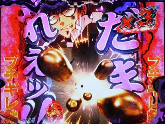 この他にバーストチャレンジいう演出も存在し、ボタンで報酬決定後に、ボタン押しで当落が決定する。信頼度がそこそこ高い上に、失敗しても敗北(2R通常)になるわけではないので安心して見てられるぞ!