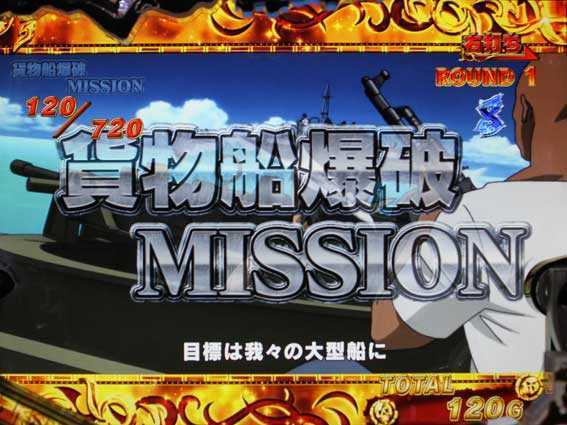 ミッションは2種類で、いずれも演出成功でバウンティロワイヤルに突入となる。確変期待度は戦闘ヘリ撃墜よりも貨物船爆破の方が上!