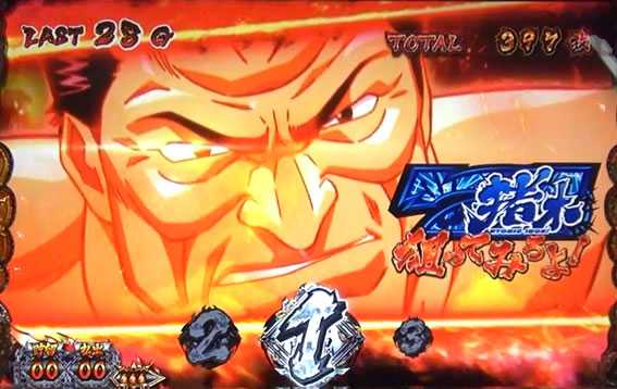 AT終了後に移行する「超通常時」だと上位版の超コロシアムZONEに移行する可能性アリ。同様にカットイン発生でボーナスのチャンス。ボーナスに当選せずに15G経過すると闘魂CHANCEに移行する。
