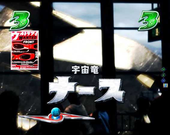 | 変動開始時、サイド液晶の 「ウルトラセブン」のロゴが発光 |