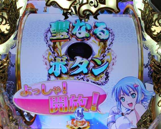 聖図柄停止後に聖なるボタンが出現!