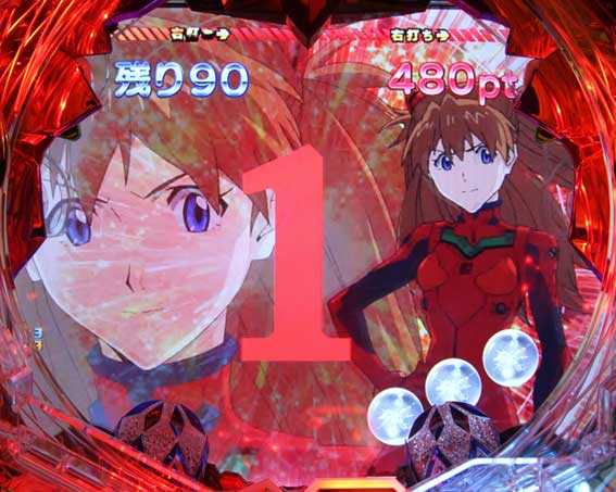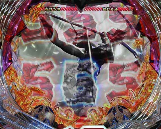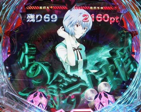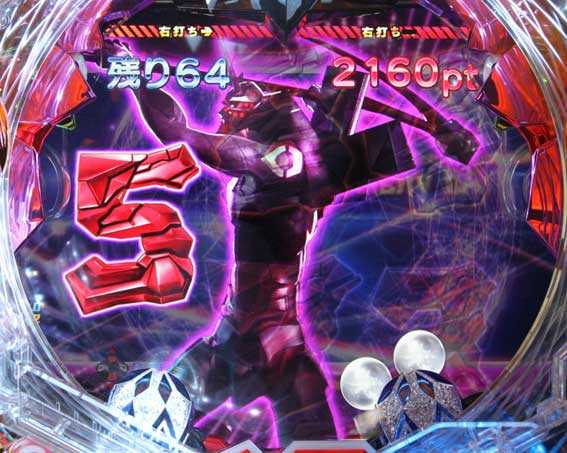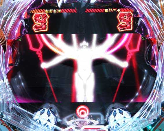 ロングリーチハズレ後などに発生。ボタンPUSHでロンギヌスの槍を引き抜けば3R確変大当り(1・3・5停止)!?