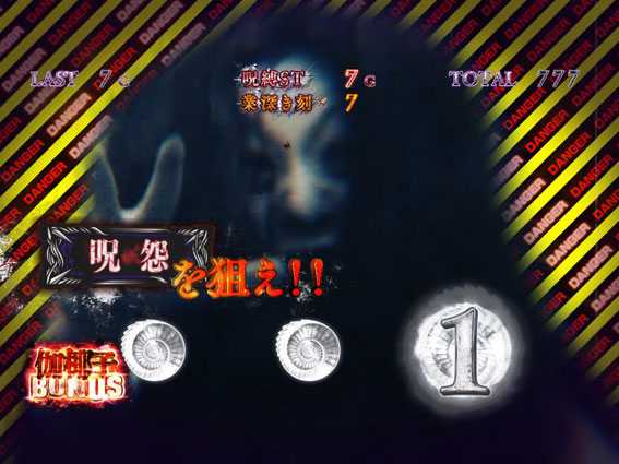 伽椰子BONUS開始時は、怨念ポイント数に応じて伽椰子覚醒チャレンジを抽選。チャレンジ中は押し順ベルが成立すれば50%で、その他の役成立なら100%でボーナスゲーム数が60Gとなる。