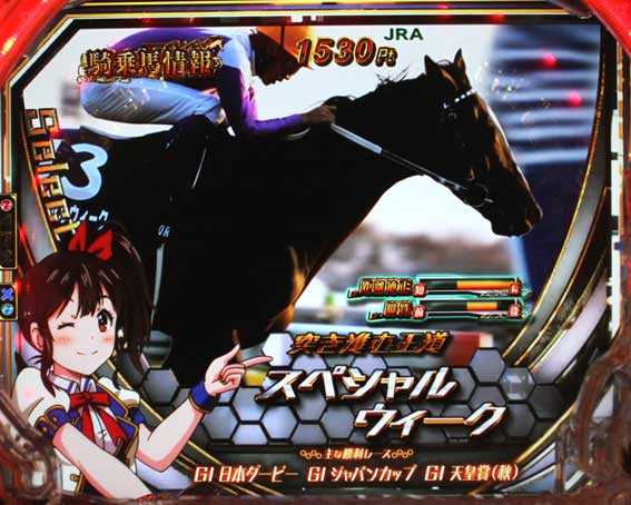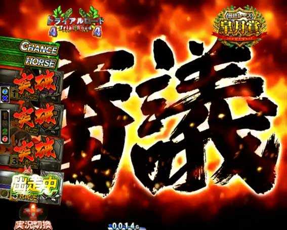 通常時の図柄揃い直後の確変チャレンジ「東京優駿」で勝つと発生する、10Rの確変大当り。終了後は三冠チャレンジに突入する。