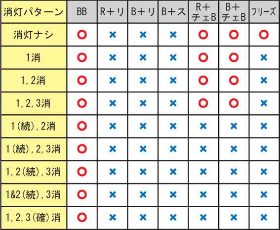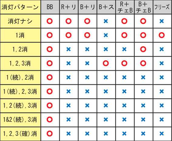 BIG中には上記の2種類のベルとハズレが出現(逆押し消化)