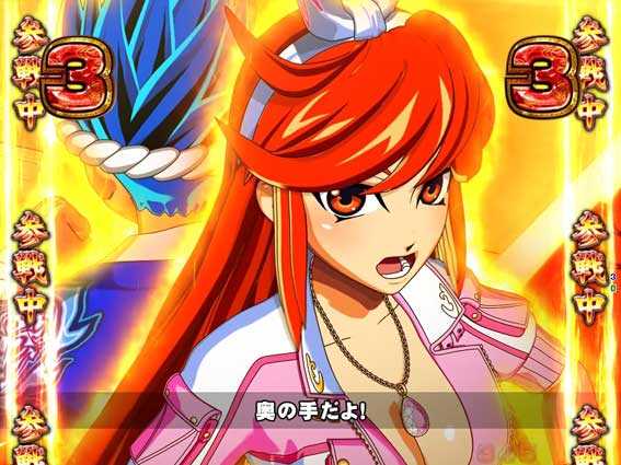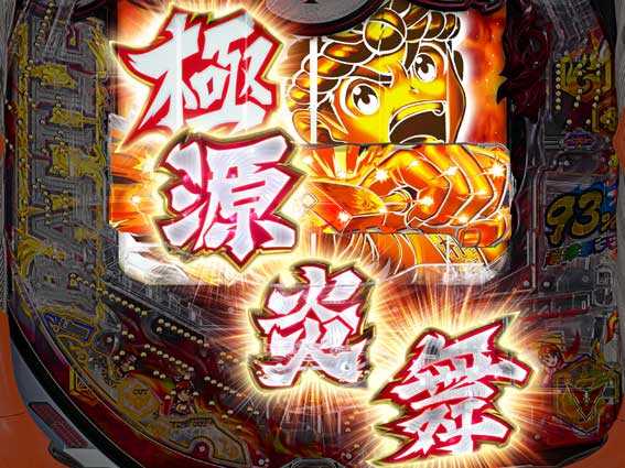 リーチ後に発生する本機最重要演出。カンナちゃんムービーが流れた後に極源炎舞の文字が完成する。発生すればバトルリーチ後半or大三源リーチへの発展が濃厚。