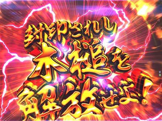 残保留1個で大当りを狙う演出なので、ナビに従って必ず保留をチャージしよう。チャージ中はオーラの色が変化し、黄<緑<赤<虹の順に信頼度がアップする。最終的にボタン押しで当落が決まるのだが、このときにレバーや虹ボタンが出現すれば大当り濃厚!? また、ボタン押しに失敗してもリザルト画面でボタンが出現すれば復活大当り濃厚だ。