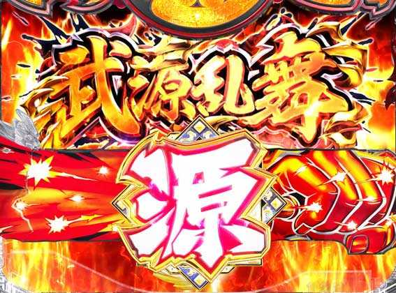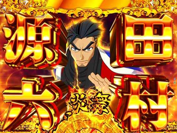 源図柄が停止すれば継続で、3連だとチャンス、4連到達なら全回転リーチ発展濃厚となる。回数表示に「継続」の文字があれば継続濃厚、また継続時に源ロゴ役モノが片落ちすると3連の可能性大。