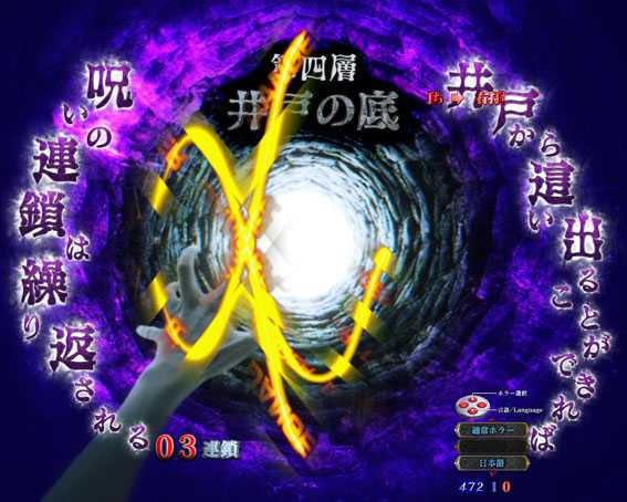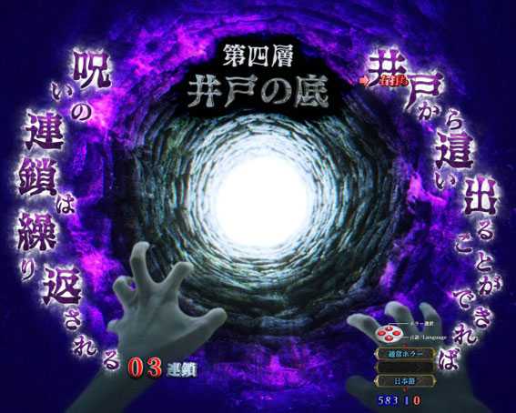 ST前半は呪いの手落下で大当りとなる「貞子接近モード」、ST中盤は3つの異なる演出から選択できる(※)「呪いの連鎖」、ST終盤は井戸から脱出できれば大当りの「最後のあがき」が展開。ST終了後は基本的に通常時に戻るが、884回転時短へ突入する可能性もアリ。