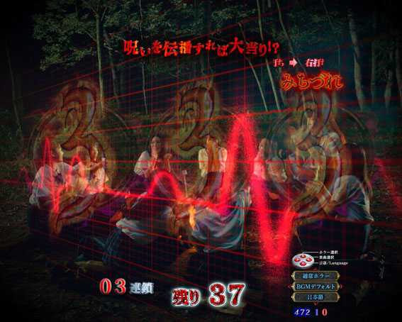 逃げる女子高生に呪いを伝播すれば大当りとなる、モード専用リーチ。登場する女子高生の種類などで信頼度が変わるぞ。