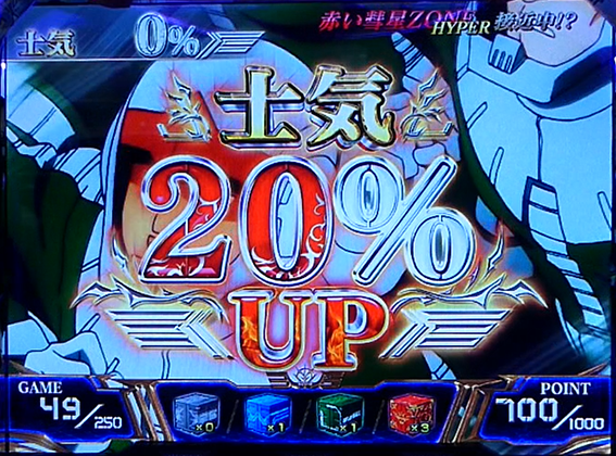 シャアAT中の赤7揃いからのみ突入する20Gの擬似ボーナス。消化中は主にレア役でATゲーム数上乗せ抽選が行われ、PUSH演出発生で上乗せ濃厚。また、「7を狙え!」演出時に赤7が揃えば大量ゲーム数上乗せの期待大だ。