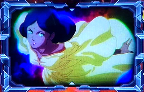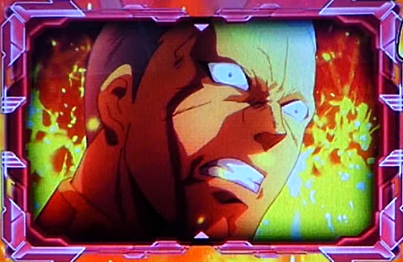 上記演出発生時は逆押しで赤7揃いのチャンスで、赤7揃い時の恩恵は状況によって異なる。赤7ではなく赤BARが揃った場合はネオジオンRUSH MAX昇格濃厚!?