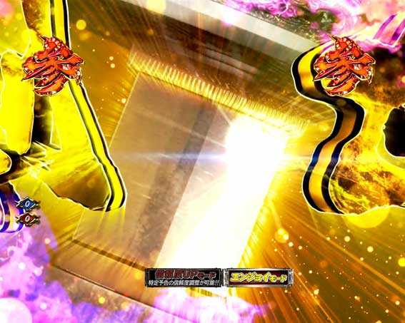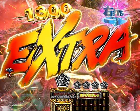 真仕置CRASH TURBOは120回転+αの電サポモード。120回転目に継続告知が発生すると電サポ50回転を追加、さらにその50回転を消化した後に再度継続告知が発生すれば電サポが109回転追加される。なお、電サポが279回転続いた場合は時短であることが濃厚となり、時短スルー後に1回転消化で遊タイムが発動する。見た目上はそのままで時短がさらに379回転追加される見せ方をするぞ。