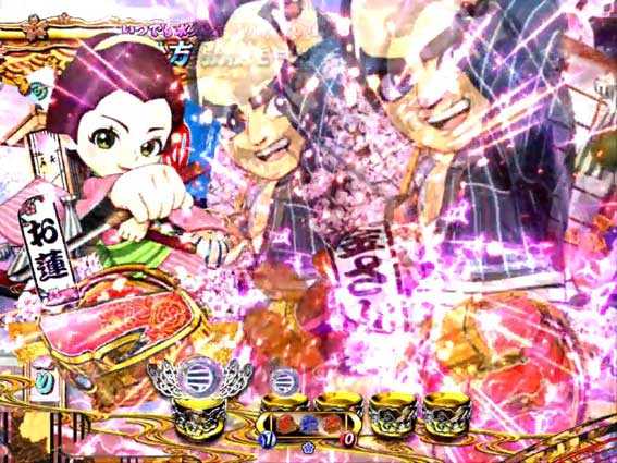 | 左:お蓮がやられている 右:あっちぃムービー | 確変大当り濃厚 |