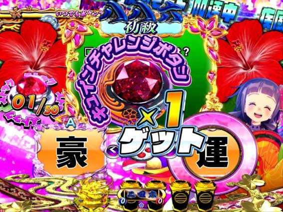 テンパイ煽り発生時はボタンを長押しor連打しよう。キュインと鳴れば確変大当り濃厚だ。液晶下部に並ぶボタンアイコンに赤や虹のオーラが付くチャンスアップもアリ。