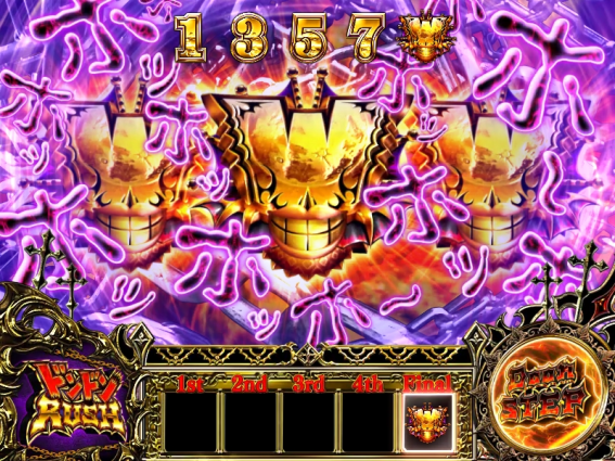 ATの残り枚数がゼロになりドンドンアタックのストックもない場合は、次ゲームで最終ジャッジ抽選が行われる。当選すればドンドンアタックを経由して次セットへと継続する。なお、レア役成立時は必ず当選=継続だ!