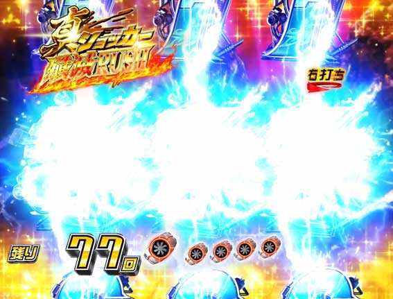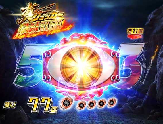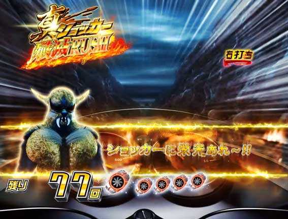 ST「真・ショッカー殲滅RUSH」は120回転のST。継続率が約83%で大当りの80%がMAX出玉(約1500個)となるため出玉性能はかなり高い。また、STが終わっても40%で120回転の時短へ突入するぞ。