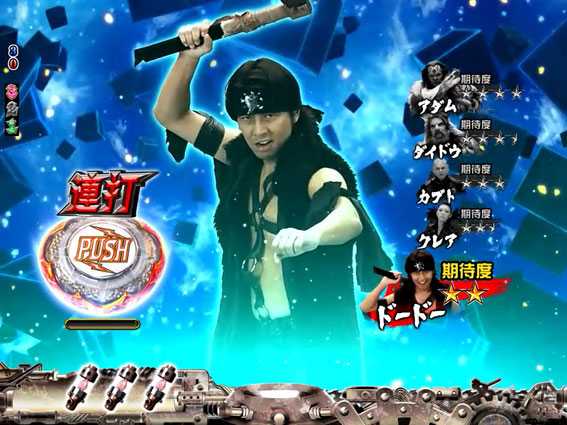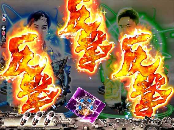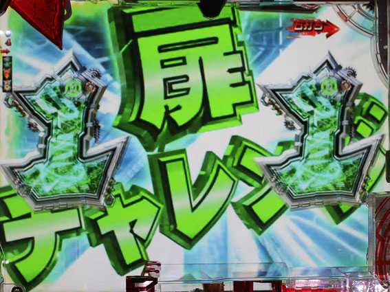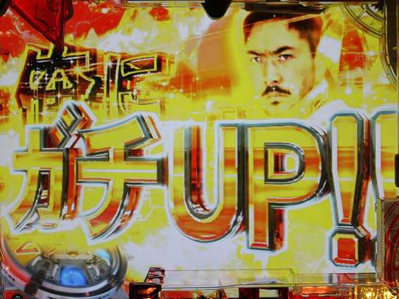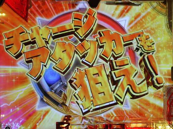 内部的にガチチャンスorガチバトルへの発展が約束されている場合、 リーチ演出中のボタンPUSH時の1/200で ロゴランプが激しく点滅&特殊エフェクトが出現 |