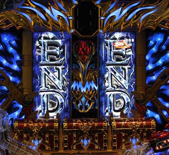 確変「GOLDEN GAME」(GG)は次回大当りまで電サポが継続する。GG中の大当り確率は約1/88で消化スピードが早く、かつ大当りの77.3%がMAXラウンド&GG継続だ。なお、GG中は専用演出「終焉の時」が発生すると、END BONUS当選&GG終了のピンチとなる。