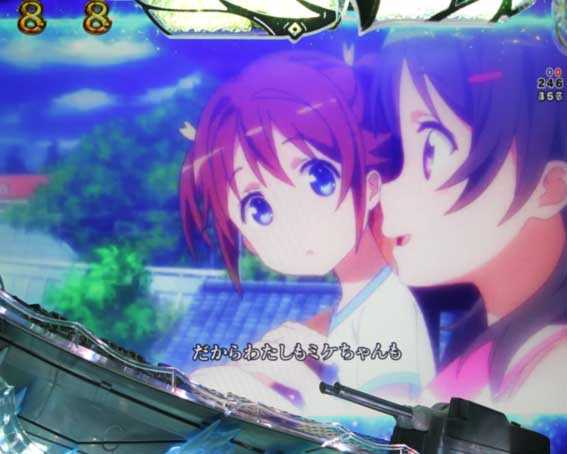 通常時のリーチ演出「晴風場所チャレンジ準決勝」成功を機に発生。ミケが相撲勝負で勝てば3R確変、敗北で3R通常だ。