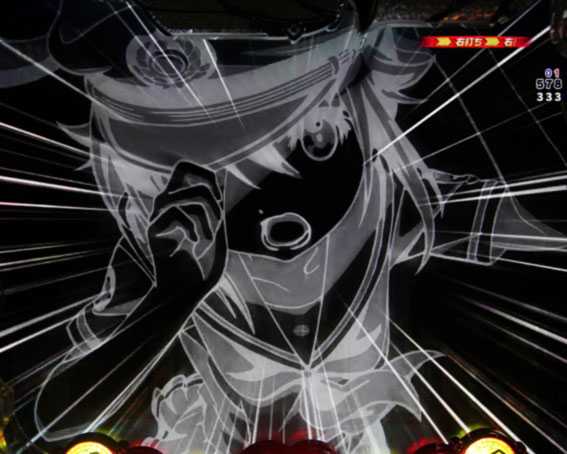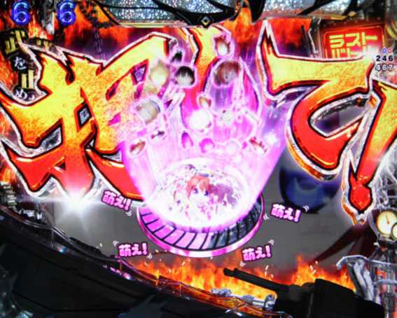通常大当り当選の可能性があるリーチ演出。負けると通常大当りだが、逆に勝つことができれば小当りRUSHへ突入する。