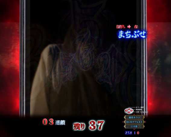 小当りor電サポなし2R確変を引くと突入。モード名が「~疑惑~」ではなく「~確信~」なら潜伏確変状態濃厚。また、突入前に貞子接近チャンスが発生した場合も潜伏確変状態濃厚となる。なお、潜伏確変状態だったとしても、74回転経過で通常時に戻るので注意しておこう。