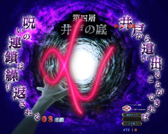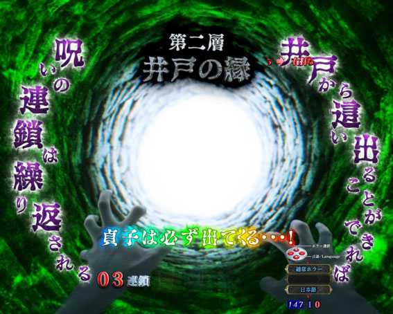 ST前半は呪いの手落下で大当りとなる「貞子接近モード」、ST中盤は3つの異なる演出から選択できる(※)「呪いの連鎖」、ST終盤は井戸から脱出できれば大当りの「最後のあがき」が展開。ST終了後は基本的に通常時に戻るが、598回転時短へ突入する可能性もアリ。