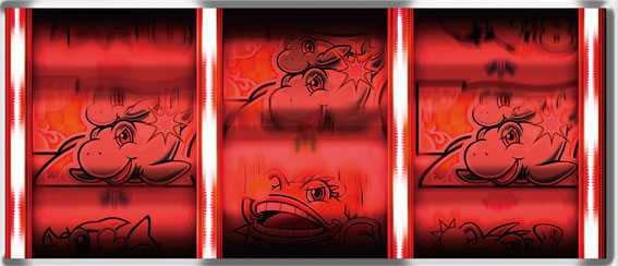 リールが全消灯すると発展。ボタンを回して中リールを動かし大当りを狙おう!