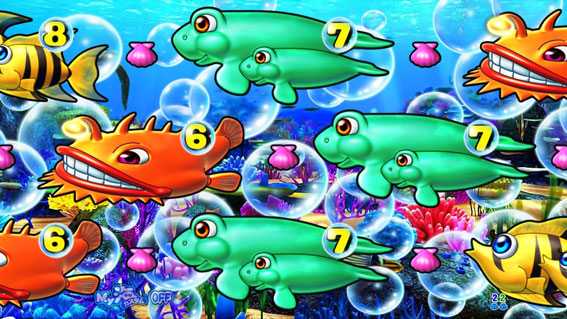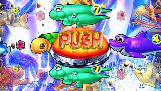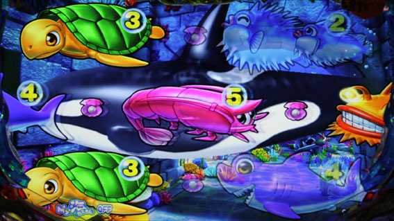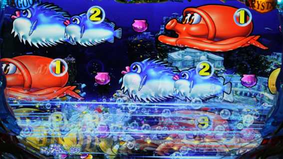画面タッチで発生するステップ4では、赤クラゲやプレミアム魚群、貝開放ボタンなどの大当り濃厚パターン発生の可能性あり。